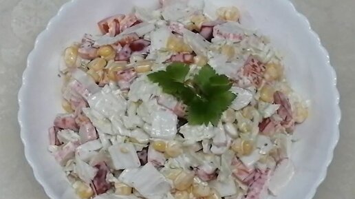 Самый простой и быстрый, но очень вкусный салат с крабовыми палочками! Несмотря на заправку майонезом, он все равно будет легким!