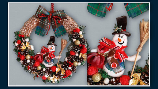 Взяла джут, шишки, ткань и смастерила необычный венок из джута. Венок со снеговиком своими руками. Новогодний декор своими руками.