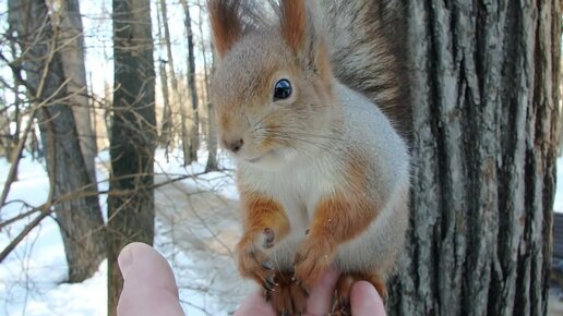 Ушастик стережёт своё дупло, а потом кушает орешки