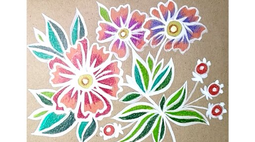💐🌺💐Декоративное рисование цветов белой гуашью и цветными карандашами.💐🌺💐
