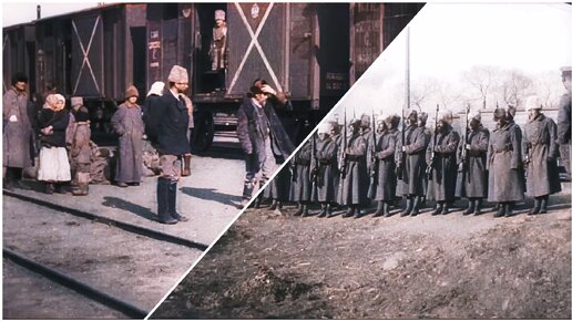 Сибирь и Дальний Восток в 1918-1920 гг. Серия 29. Никольск. Беженцы живут в вагонах. Харбин. Русские солдаты. 12 ноября 1918 г.