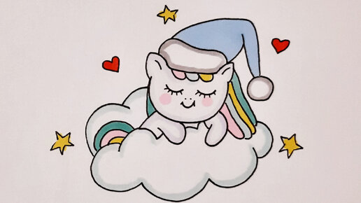 Как нарисовать МИЛОГО ЕДИНОРОГА НА ОБЛАКЕ/рисунки для срисовки