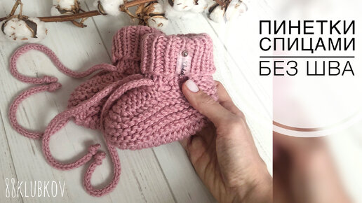 Пинетки спицами для новорожденного, пинетки платочной вязкой без шва)