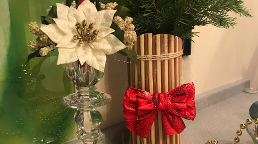 Из обычных палочек для суши получилась необычная новогодняя ваза!