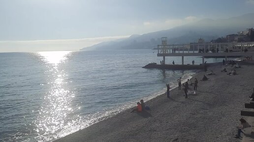 В Ялте 3 января загорают и купаются отдыхающие. КАк выглядит пляж Массандра с массой приезжих