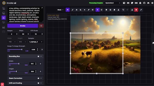 Процесс рисования в InvokeAI - Canvas Overdrive #2