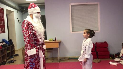Дед мороз - тренер, пришёл поздравить каратистов и подарить подарки.