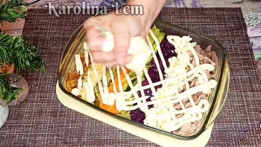 "Мясной горизонтальный салат"; очень интересное и удачное сочетание мяса с овощами