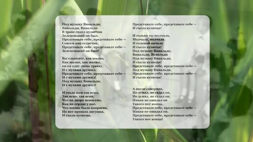 В траве сидел кузнечик плюс Под музыку Вивальди (И головой качала, и съела кузнеца)
