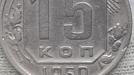 16 витков ленты на гербе. 15 копеек 1950 года. СССР. Ленинградский монетный двор