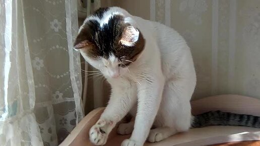 Кот-Фёдор разбирает мебель.