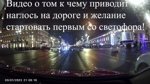 Видео о том к чему приводит наглость на дороге и желание стартовать первым со светофора.