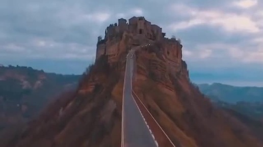 Современная дорога к древнему городу Баньореджо в Италии. Город основан этрусками в 500 году до нашей эры.
