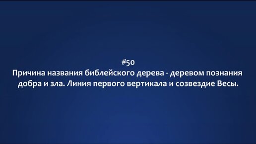 #50 Причина названия библейского дерева - деревом познания добра и зла. Первый вертикал и Весы.