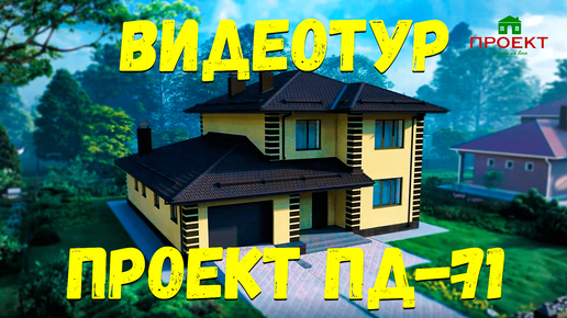 Проект кирпичного двухэтажного дома с гаражом, планировка и 3д видеотур. ПД-71