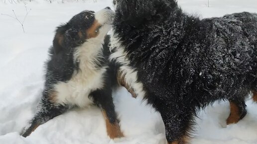 Бернский зенненхунд Марс, Тильда и заснеженный уральский лес, часть 1. Купание в снегу.