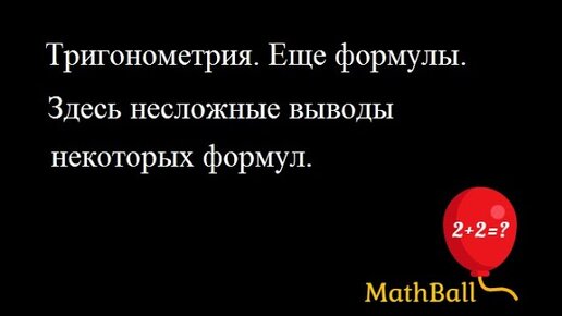 Тригонометрия. Шпаргалки. Еще формулы. Готовимся к ЕГЭ по математике вместе с MathBall.
