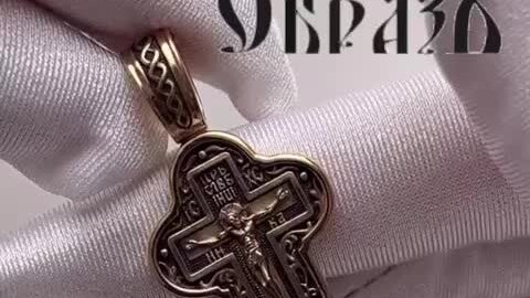 Золотой крест с молитвой "Честному Кресту" 585 проба красного цвета (арт. 40316)