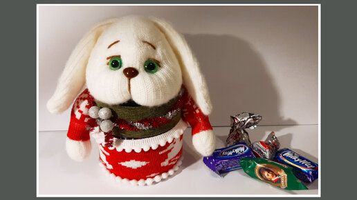 ЗАЯЦ-КОНФЕТНИЦА! Как сделать зайца. Подарок на 2023 год своими руками! Заяц из носков и пластиковой банки из Fix Price