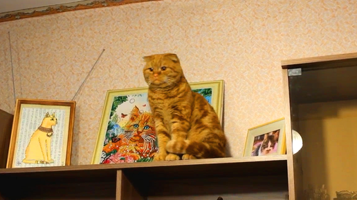 Котик Бася на шкафу.