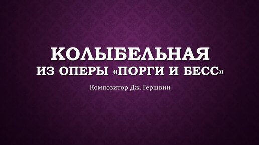 Колыбельная из оперы "Порги и Бесс". Дж. Гершвин.
