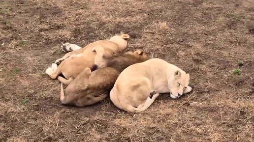 Старый лев Казанова уютно пристроился между двух львиц) Тайган