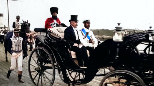 Визит президента Франции Пуанкаре к Императору России Николаю II. Июль 1914 г. Кинохроника в цвете