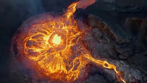 Лава лезет из вулкана съемки с квадрокоптера