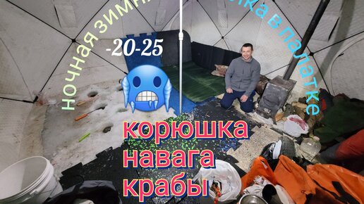 Ночная зимняя рыбалка на льду в палатке. Мороз, рыба прёт, крабы тоже.