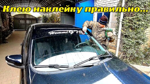 Лада Гранта, клею наклейку, на лобовое стекло, своими руками, в домашних условиях.