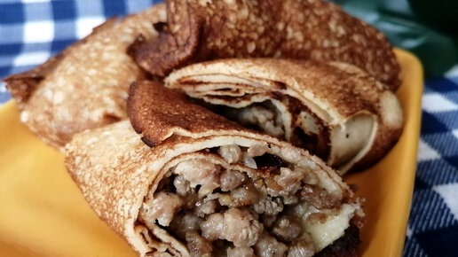 Румяные фаршированные блины с мясной начинкой!