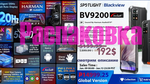 Blackview BV9200 IP68 - распаковка - 120Гц, FHD+, G96, 66Вт\30Вт(беспроводная), Harman Kardon