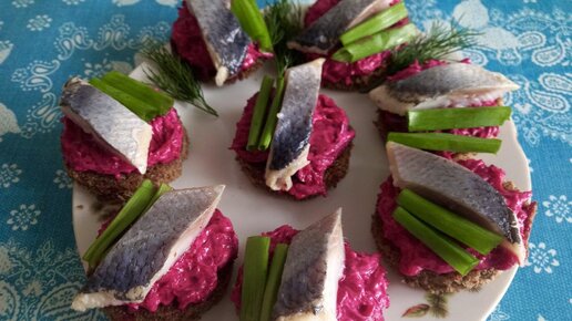 Мини "Селедка под шубой" на хлебе. Ярко, быстро, вкусно