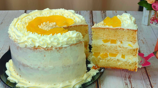 БЕСПОДОБНЫЙ ТОРТ С ПЕРСИКАМИ!СОЧНЫЙ ДОМАШНИЙ ТОРТ ИЗ САМЫХ ПРОСТЫХ ИНГРЕДИЕНТОВ!