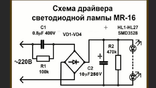 Самая простая схема драйвера светодиодной лампы The most simple driver circuit LED lamps