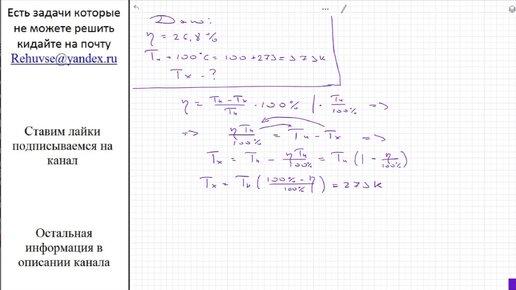 Физика КПД теплового двигателя составил 26,8 %. Чему равна температура холодильника, если температура нагревателя составляет 100 градусов