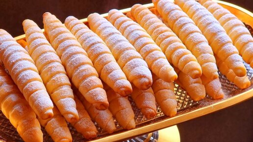Быстрые рождественские и праздничные угощения! Эффектные трубочки на сметане. Вы будете в восторге. Просто и очень вкусно к чаю.Тает во рту!