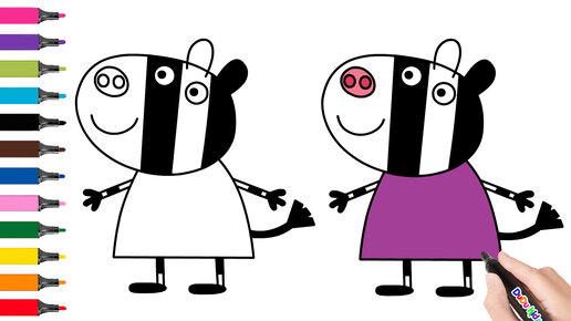 Как Нарисовать Зебру Зоя из Свинка Пеппа. Уроки рисования для детей поэтапно. Обучающее видео. How to draw Zoe Zibra from Peppa Pig.