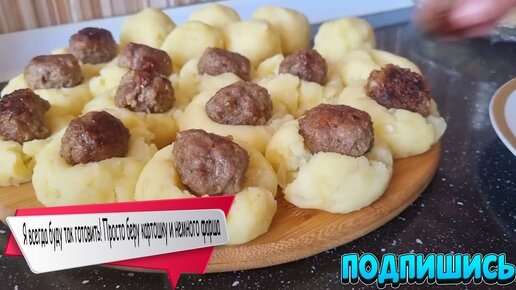 Ммм, как вкусно! Я всегда буду так готовить! Просто беру картошку и немного фарша.