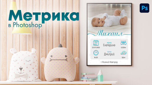 Метрика - плакат для новорожденного в Photoshop
