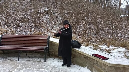 Флейта в Кисловодском парке. Прекрасная мелодия среди зимы