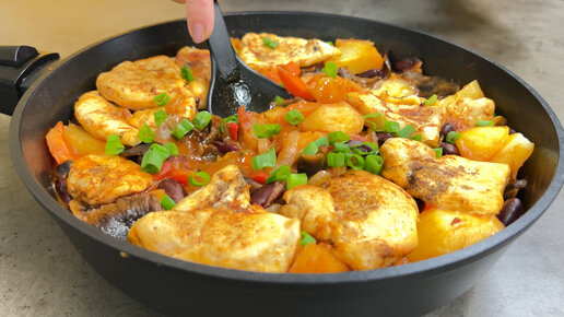 За уши не оттащишь, так вкусно! А приготовить очень просто! Курица с фасолью и грибами