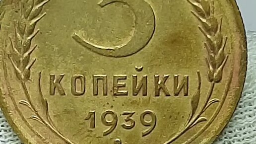 3 копейки 1939 года. 11 витков ленты на гербе.. СССР. Ленинградский монетный двор.