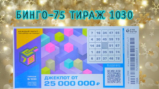 БИНГО-75 ТИРАЖ 1030 ОТ 08 ЯНВАРЯ, ПРОВЕРИТЬ БИЛЕТ, СТОЛОТО