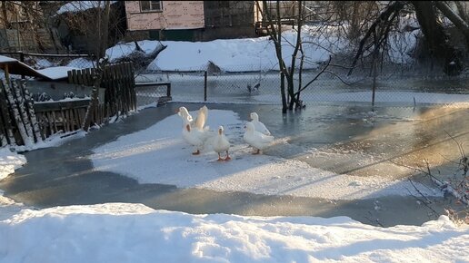 Пришли рождественские морозы . Переселяем гусей и уток.