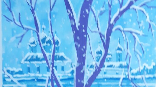 ЗИМНИЙ ПЕЙЗАЖ С ХРАМОМ темпера. Художник Елена Сизова