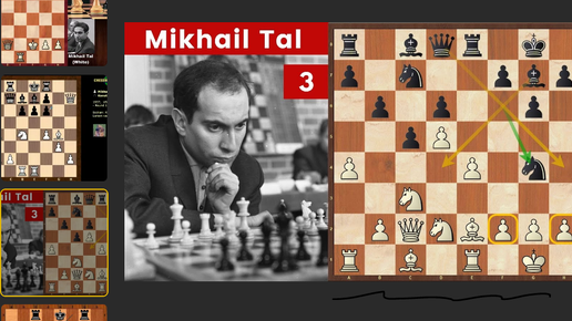Рижский кудесник Михаил Таль виртуозно, с жертвой ладьи, переигрывает на классе сицилианскую зашиту Константина Кламана (Москва, 1957, 1-0)