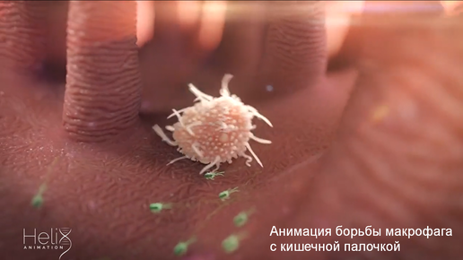 Наглядная анимация борьбы макрофага с кишечной палочкой в пищеварительном тракте