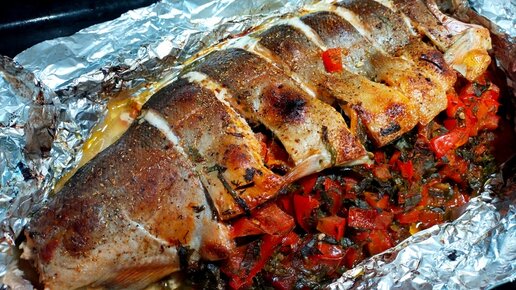 Форель запеченная в духовке целиком с овощами.Супер рецепт, рыба получается безумно вкусной и сочной