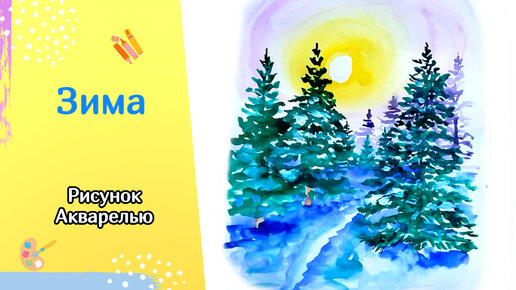 Как нарисовать ЗИМНЕЕ УТРО акварелью | Зимний пейзаж с заснеженными елями